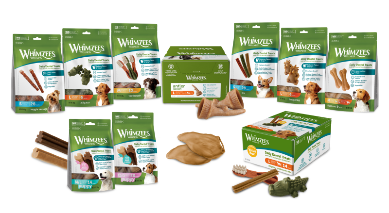 Whimzees zijn smakelijke snacks voor de hond met uitsluitend natuurlijke ingrediënten. Whimzees verzorgen het gebit van uw hond en zorgen door de vreemde figuurtjes voor het verminderen van plak op de tanden. Whimzees bevatten slechts een aantal natuurlijke ingrediënten, zijn graanvrij en bevatten geen vlees of vis.