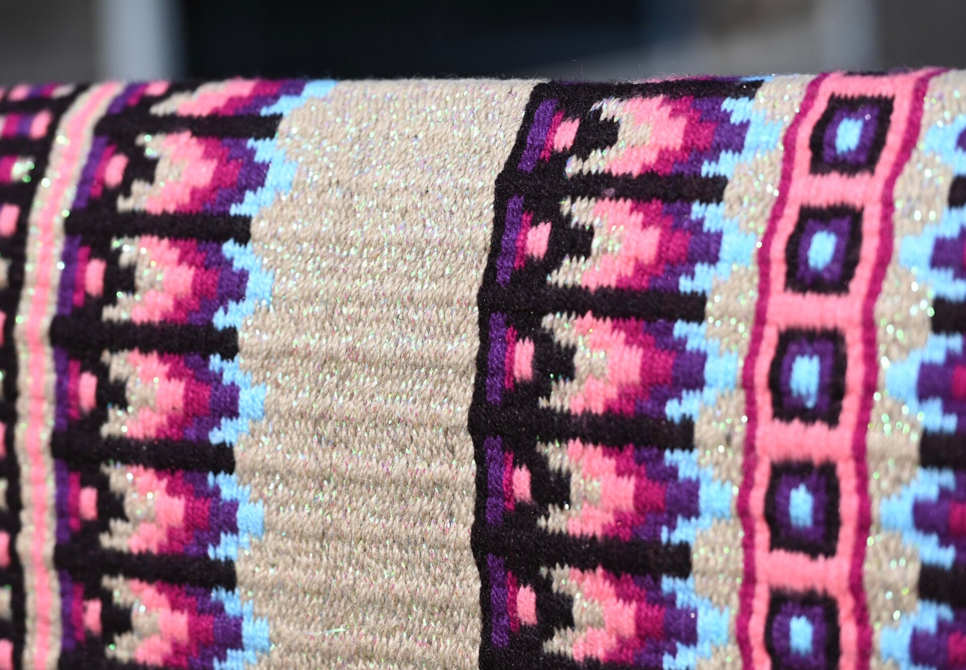 Showblanket gemaakt van 100% wol. Afgewerkt met een lederen stuk waar de singel komt.