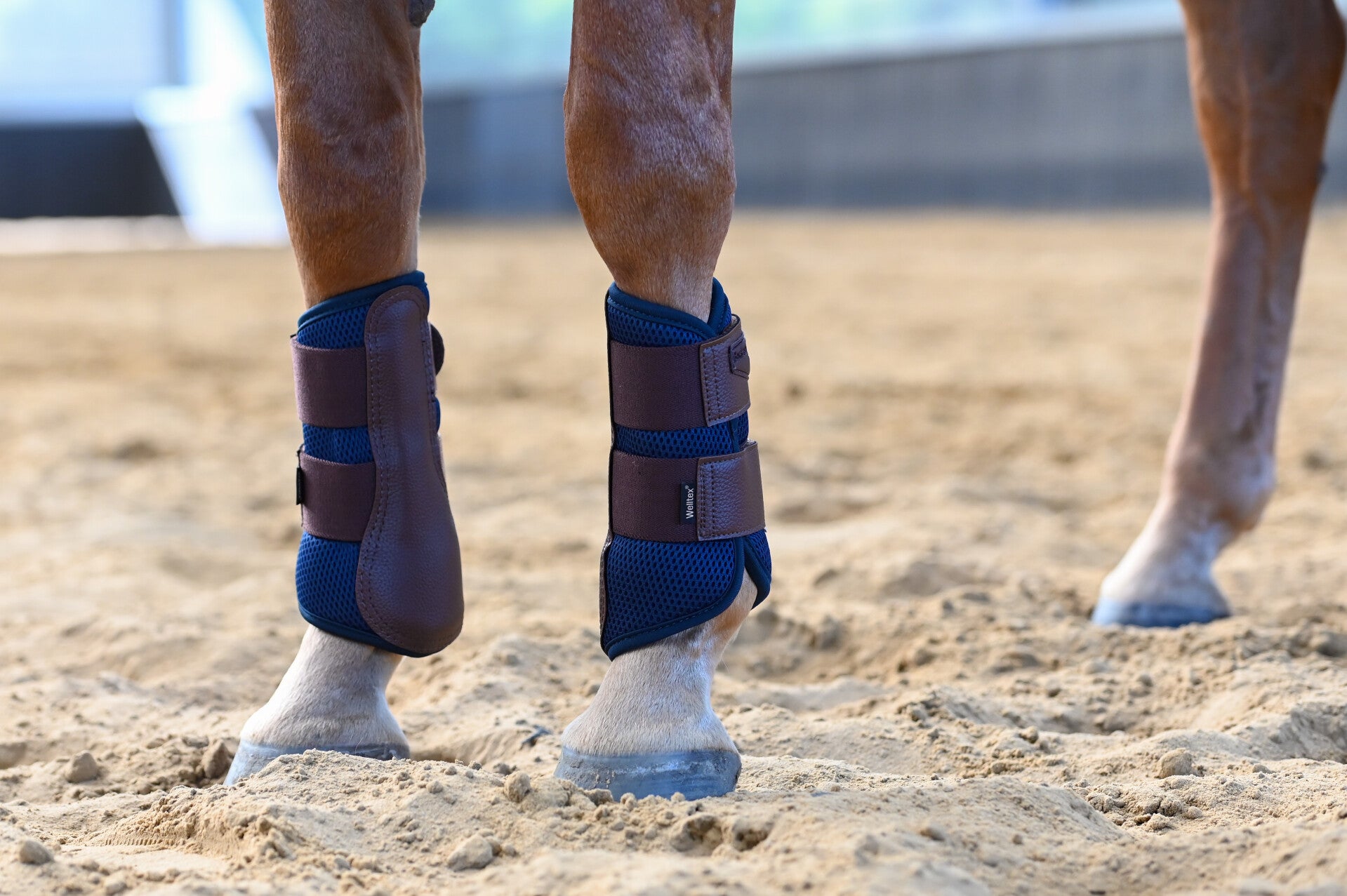 Flexibele brush boots in 3D Mesh, met een schokabsorberende en drukverdelende vulling om de benen van het paard te beschermen tegen stoten en verwondingen. Zeer ademend om oververhitting te voorkomen. Sterke en versterkte klittenbandsluitingen zorgen voor een comfortabele pasvorm. Stijlvol design met kunstleder over de verstevigde zone en het uiteinde van de bandjes.