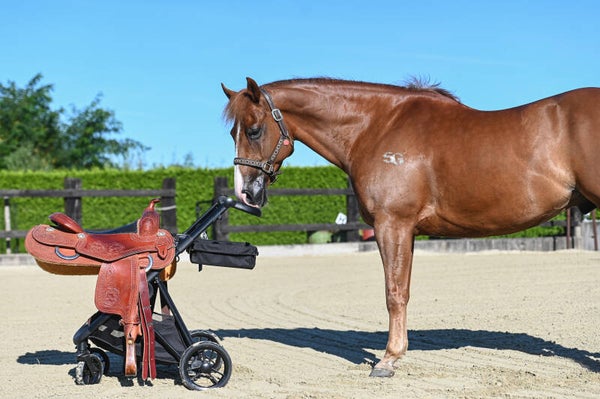 Nooit meer zwaar sjouwen met de IRHCarry Light zadelcaddy! De zadelcaddy heeft plaats voor al je tuig en poetsspullen. De off-road wielen zijn gemaakt om comfortabel over elk soort terrein te rijden. De inklapbare caddy kan worden meegenomen in trailers of auto's. De zadelhouder en mand zijn afneembaar en kunnen aan je staldeur worden opgehangen.