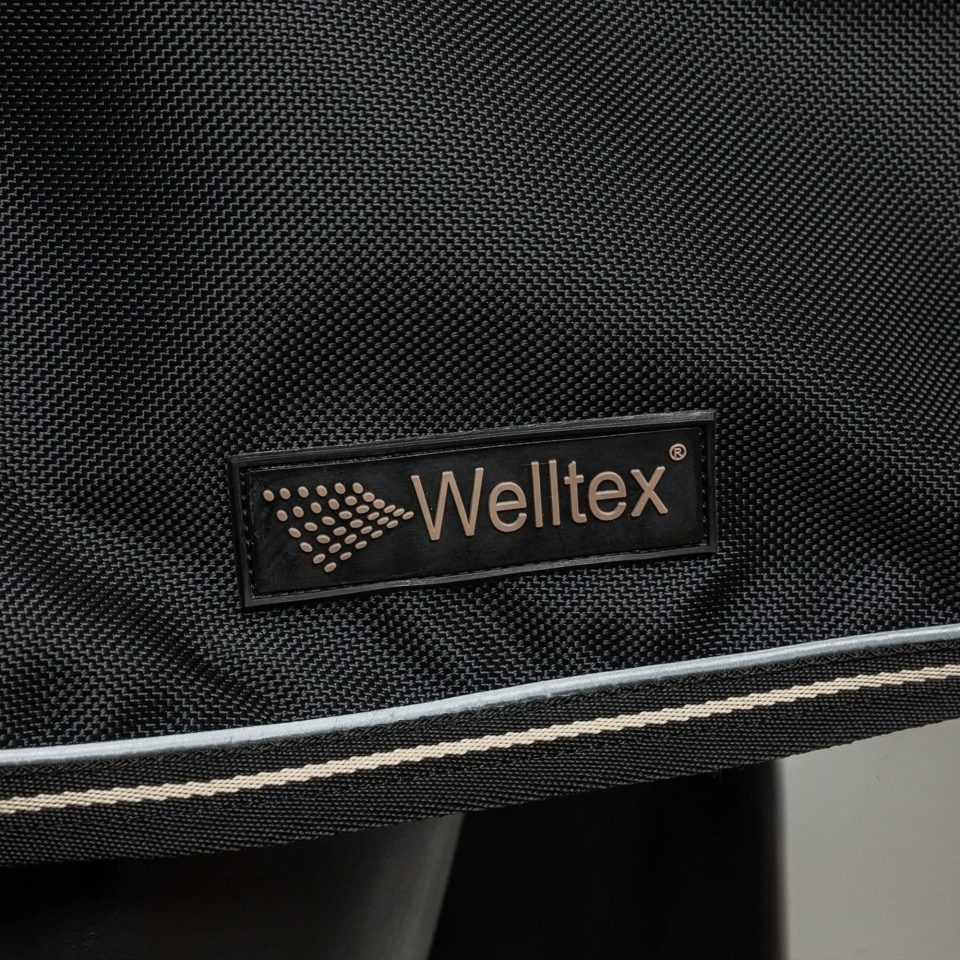 Zowel de deken als de nek zijn gemaakt van een waterafstotende stof (5000mm-3000gsm) en in de binnenlaag een geweven Welltex-stof®, die het dichtst bij de vacht van het paard ligt. De voering beschermt de vacht tegen schuren en de stof zorgt voor een krachtige reflectie van infrarode-energie. Door de grote deken kan het Welltex® materiaal zijn therapeutische effect uitoefenen op een groot gedeelte van het lichaam van het paard.