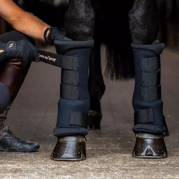 De beenbeschermer Royal is dé oplossing voor mensen die het gebruik van klei om de benen te omslachtig vinden. De werking van de Royal beenbeschermer is gelijk aan klei, maar veel gemakkelijker in gebruik. De Royal beenbeschermer is eenvoudig te sluiten door breed klittenband. De beenbeschermer heeft een buitenlaag van extra duurzaam neopreen. De binnenkant van de beenbeschermer Royal bestaat uit een uitneembare en wasbare zachte pad. Perfect te gebruiken bij ontstekingen of stalbenen, en als stal- of transportbeschermer. De beenbeschermers Royal worden per paar verkocht. Verkrijgbaar in: S ( H35 x B40cm), M (40 x 40cm), L (45 x 40cm) en XL (50 x 45cm).