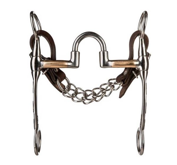 Bernard Fonck correctional bit with copper covered bars, short engraved cheeks and curb chain 10 mm.