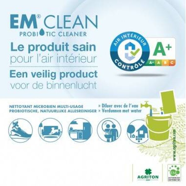 Met EM Clean kunt u alle oppervlakken reinigen, zowel binnen als buiten. De probiotische werking van EM® elimineert biofilm en remt de ontwikkeling van ziekteverwekkers op lange termijn.