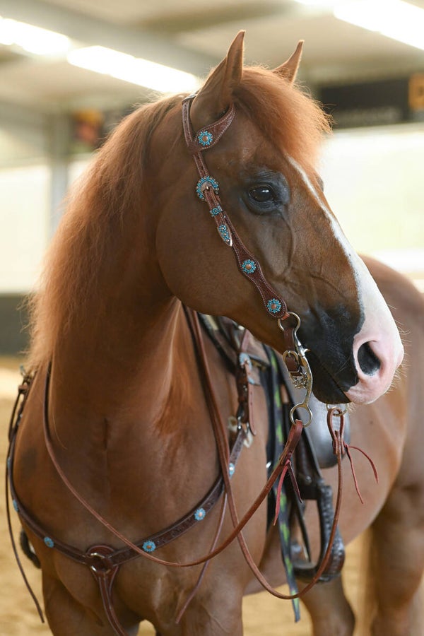 Cattlemans Two Ear hoofdstel met turquoise conchos.