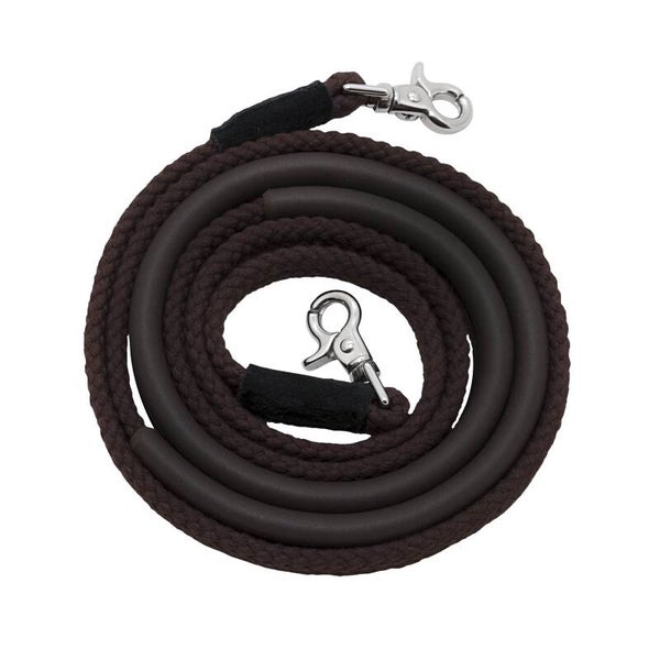 De teugels zijn ontworpen met meer dan een meter gevlochten katoen in balans met 31 inch van het beroemde ThinLine antislip materiaal in het midden en afgewerkt met roestvrijstalen schaarklikken.