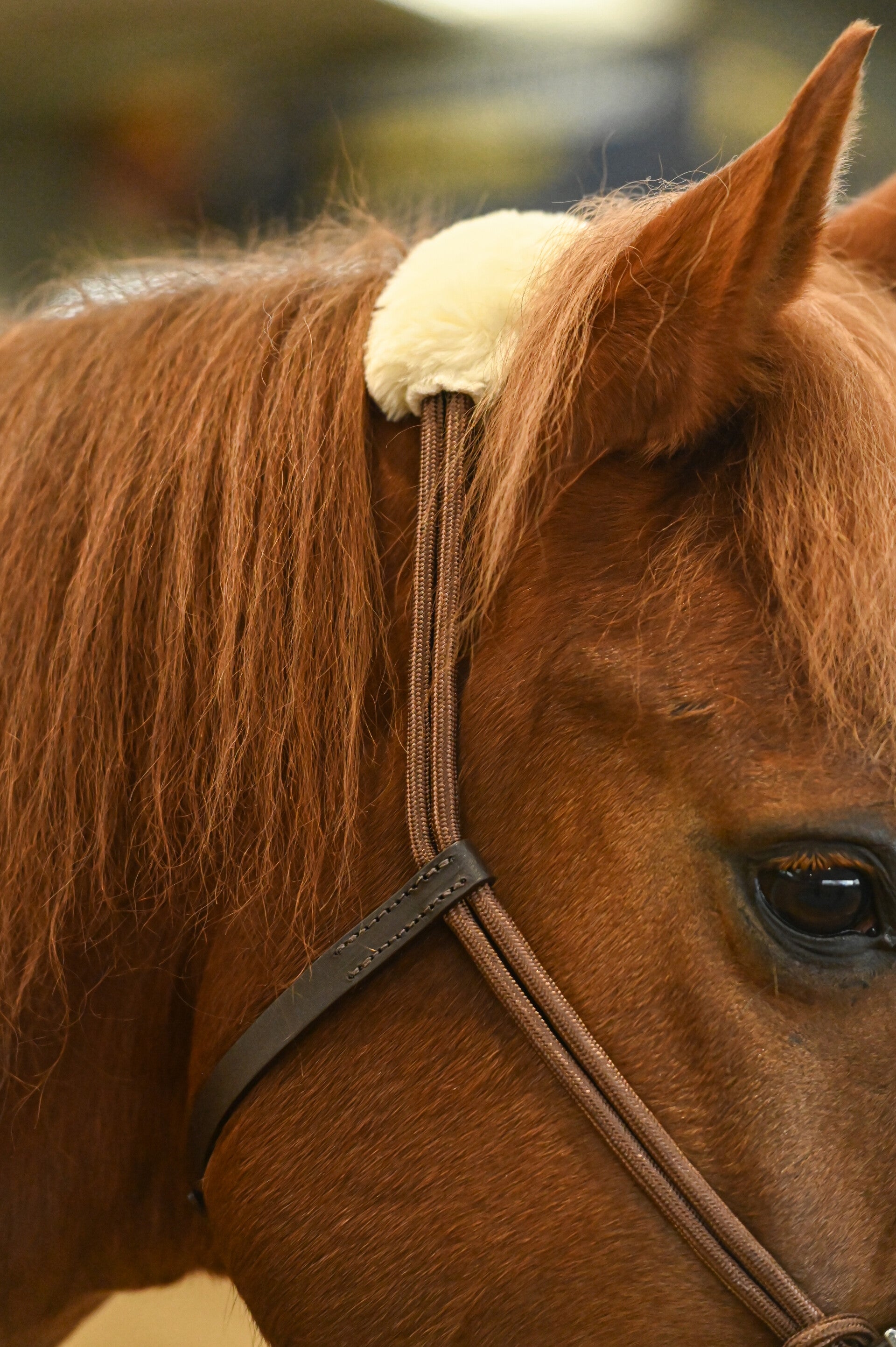 This lunging halter is designed to fit a range of sizes, it is adjustable from pony to horse size with ease. It features LAMI-CELL Comfort wool head padding for extra softness, a throatlatch made of real leather, a braided rawhide noseband for precise control and instructions, as well as durable stainless steel buckles for reliability. A perfect halter for all your training needs.