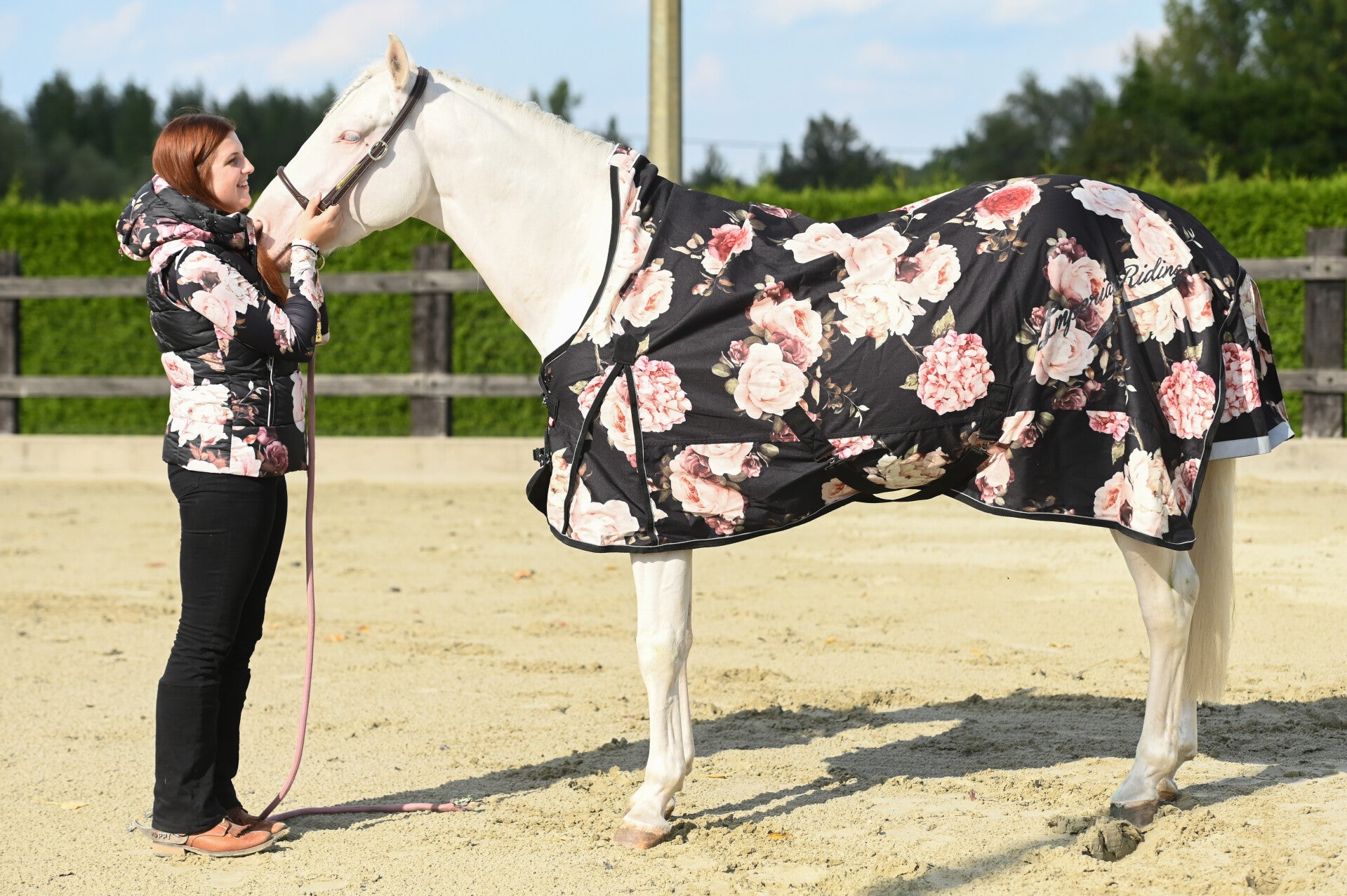 Trendy damesbodywarmer met levendige bloemenprint, comfortabel gewatteerd en capuchon met D-ring