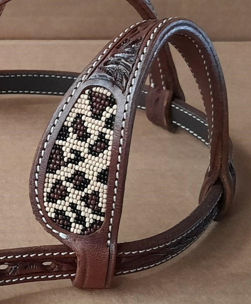 Kalflederen hoofdstel met leopardvlekjes!