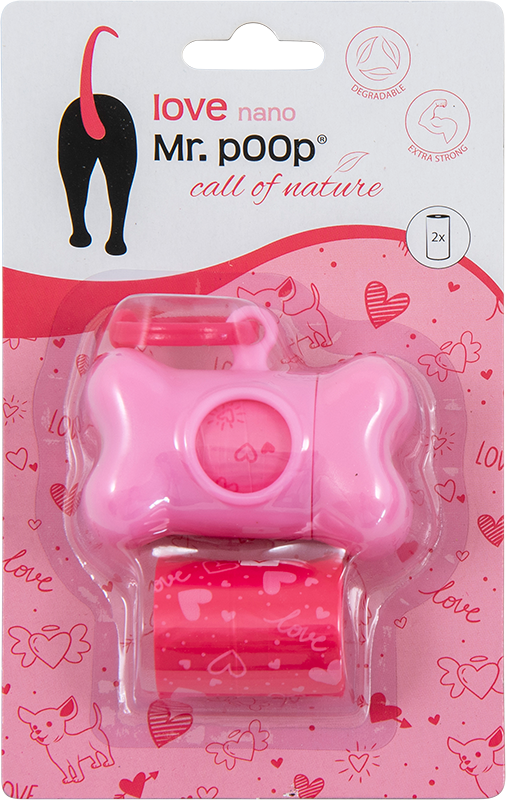 Poepzakjesdispensor met 2 rolletjes zakjes inclusief en hartjes motief!