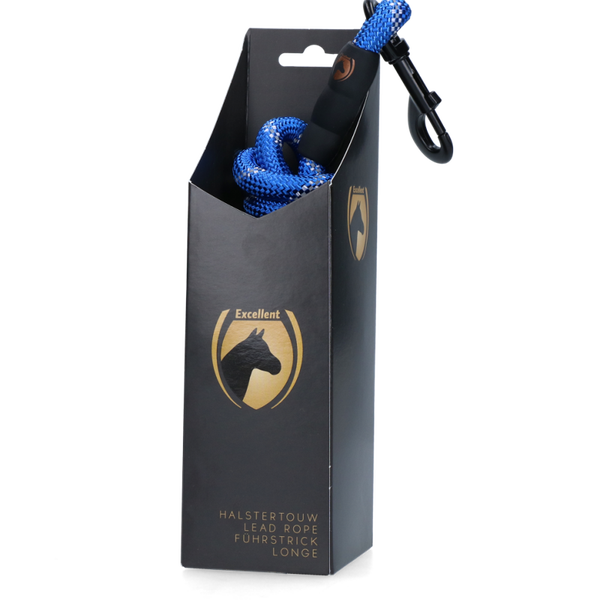 Het halstertouw van Excellent Horse is te combineren met alle halsters van Excellent Horse en is dan ook in 5 verschillende kleuren verkrijgbaar. In het halstertouw zitten reflecterende details en het gebruikte materiaal, namelijk sterk polyester, wordt ook gebruikt door bergbeklimmers. De bevestiging van het halstertouw bestaat uit een 360 graden draaibare musketonhaak (zwart) met een fraaie rubberafwerking. Het halstertouw heeft een lengte van 2 meter.