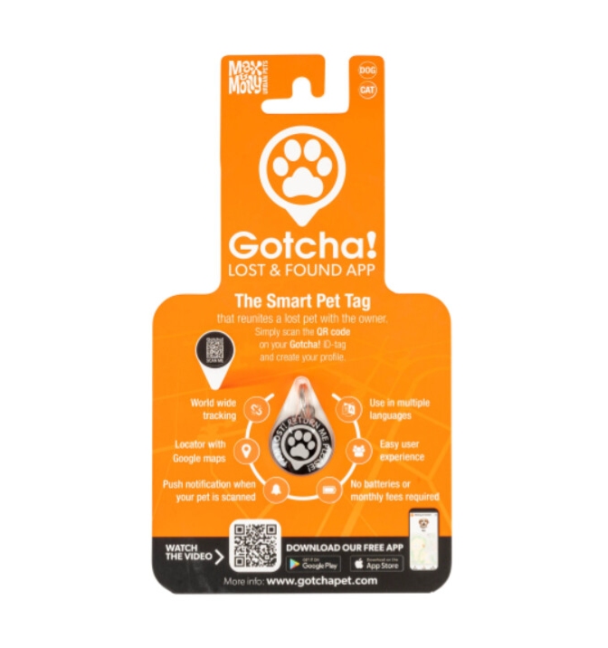 De gotcha is een hanger met QRcode. Deze hanger zit gratis aan elke Max & Molly halsband en is nu ook los aan te schaffen.
