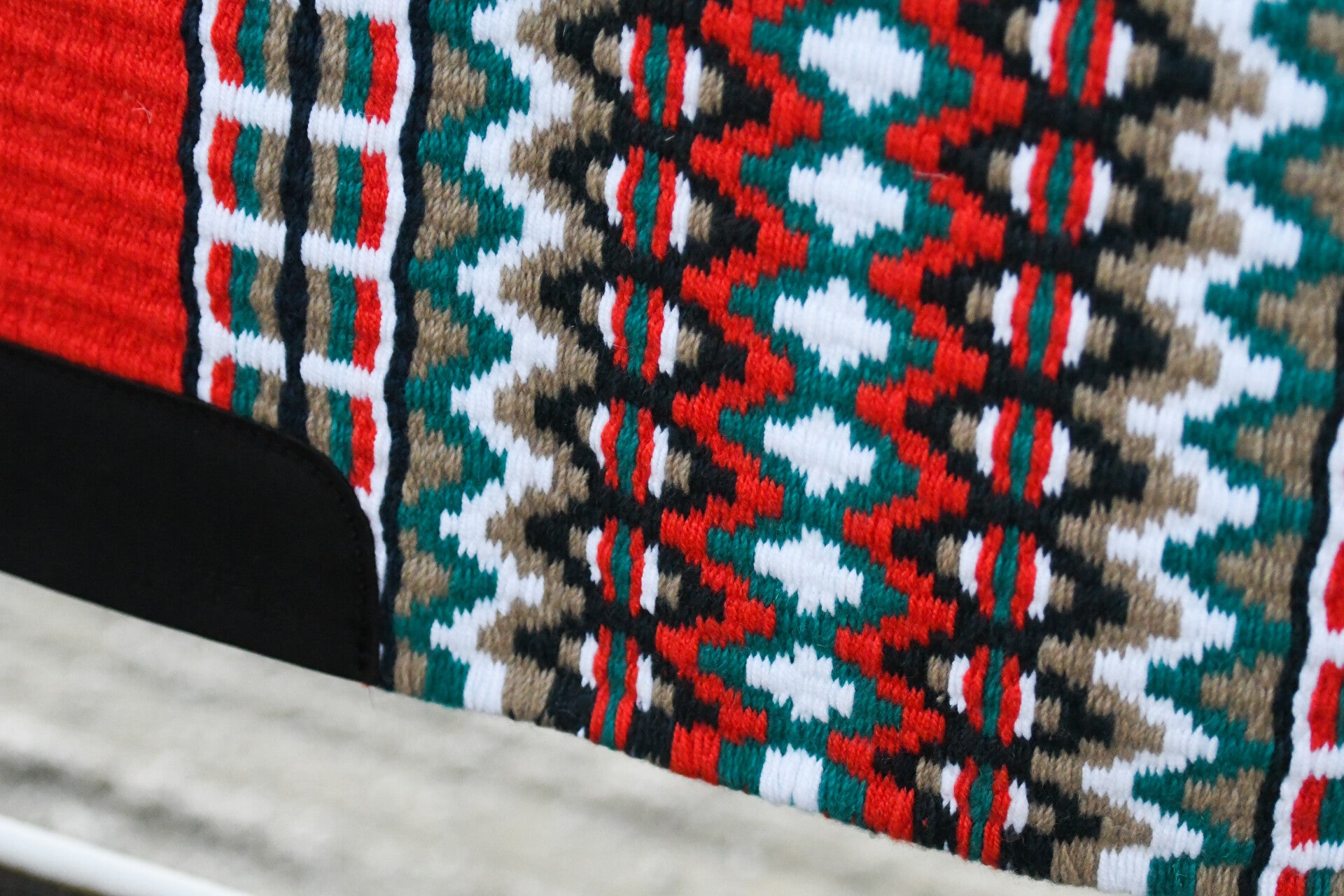 Showblanket gemaakt van 100% wol. Afgewerkt met een lederen stuk waar de singel komt.