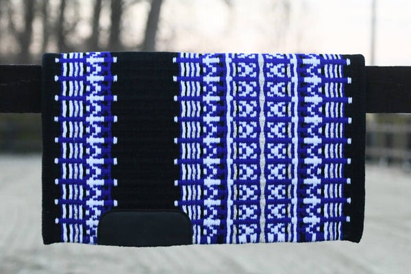 Showblanket gemaakt van 100% wol. Afgewerkt met een lederen stuk waar de singel komt.