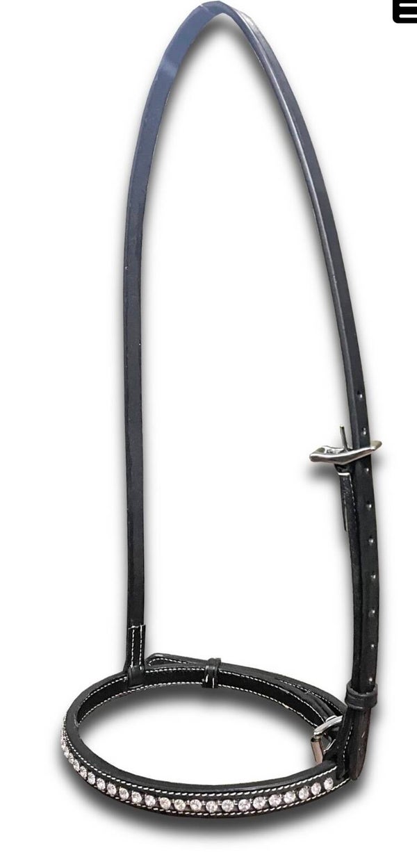Lederen neusriem rond. Echt leder. Met steentjes op de neus.