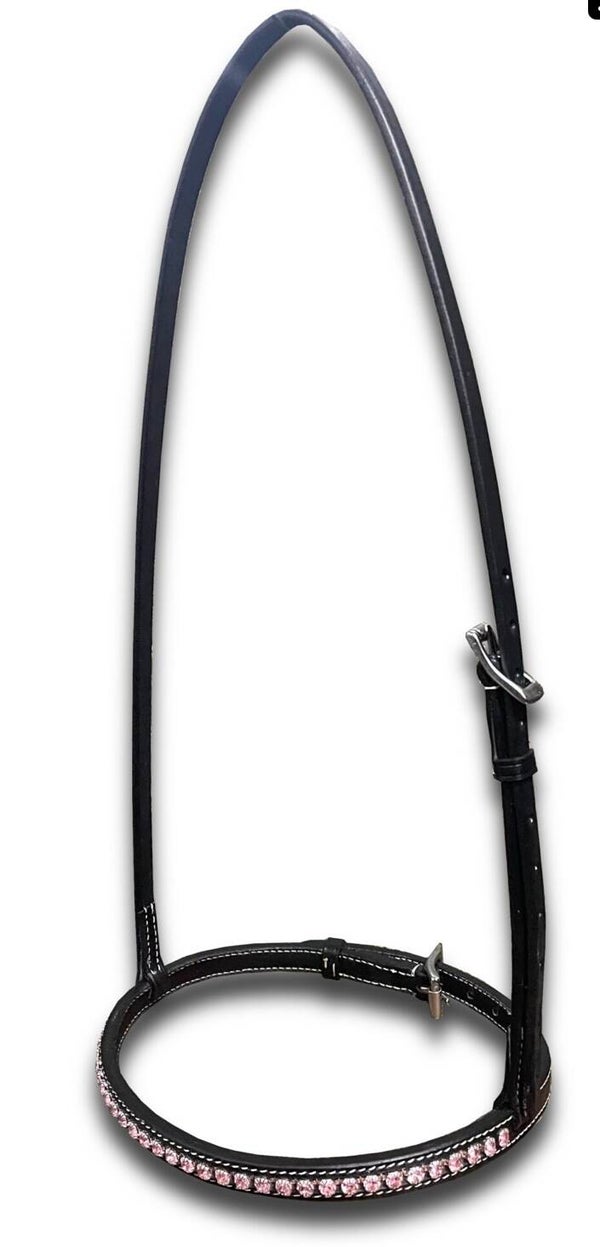 Lederen neusriem rond. Echt leder. Met steentjes op de neus.