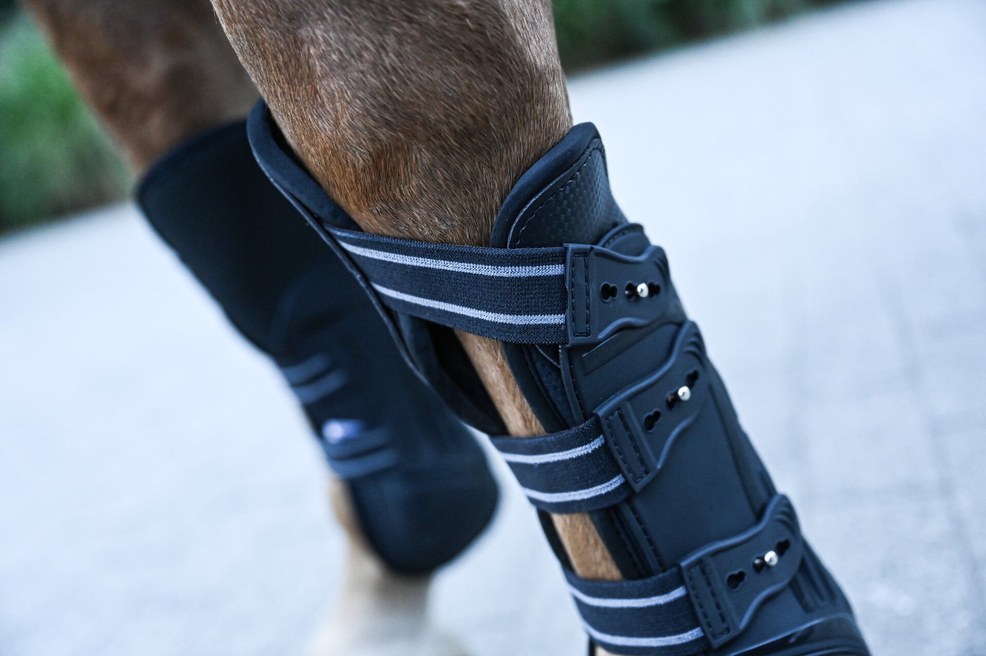 Peesbeschermers V22 met knie bescherming. Zeer ademend en zacht V22 neopreen voering en velcro sluiting.